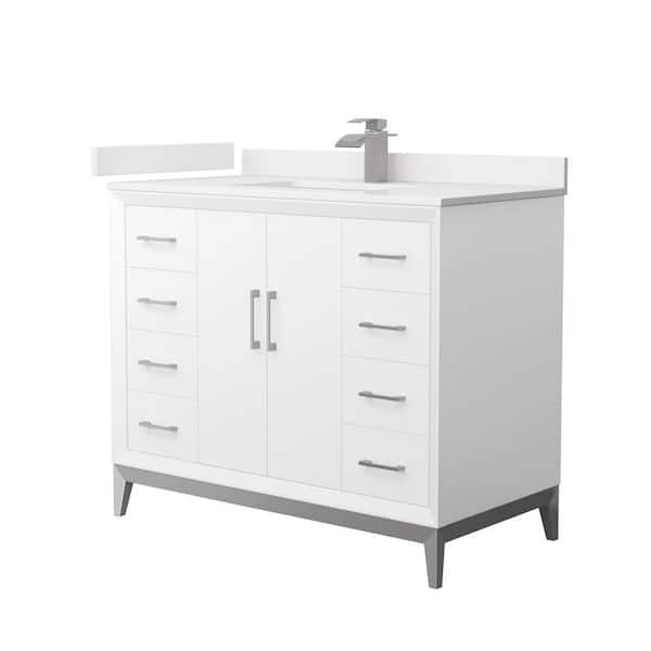 Amici 42 in. W x 22 in. D x 35.25 in. H Single Bath Vanity in White with White Quartz Top