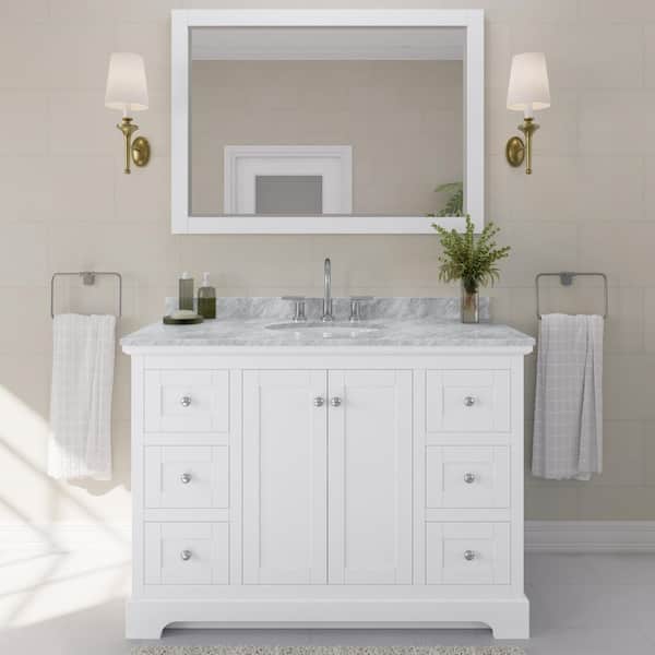 Avery 48 in. W x 22 in. D Bathroom Vanity in White with Marble Vanity Top in White Carrara with White Basin