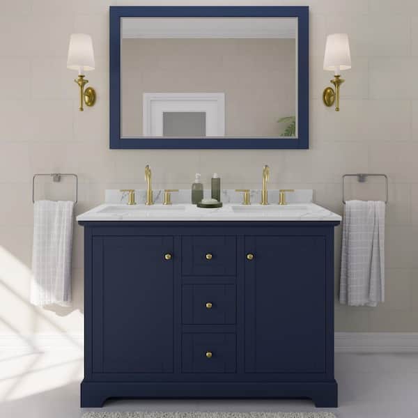 Avery 48 in. W x 22 in. D x 35 in. H Double Bath Vanity in Dark Blue with Giotto Quartz Top