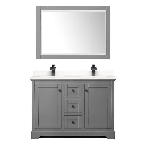 Avery 48 in. W x 22 in. D x 35 in. H Double Bath Vanity in Dark Gray with White Quartz Top and 46 in. Mirror