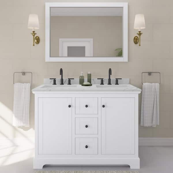 Avery 48 in. W x 22 in. D x 35 in. H Double Bath Vanity in White with Giotto Quartz Top