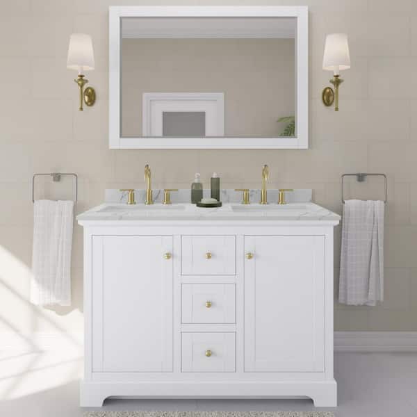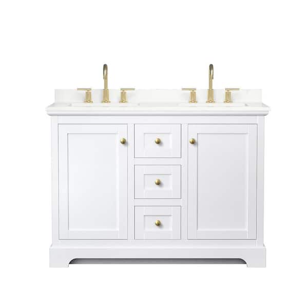 Avery 48 in. W x 22 in. D x 35 in. H Double Bath Vanity in White with Giotto Quartz Top