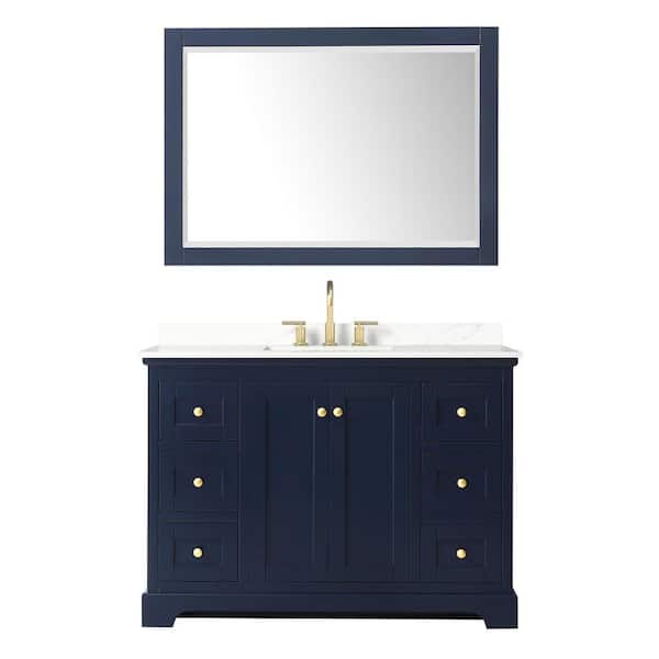 Avery 48 in. W x 22 in. D x 35 in. H Single Bath Vanity in Dark Blue with Giotto Quartz Top and 46 in. Mirror