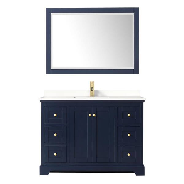 Avery 48 in. W x 22 in. D x 35 in. H Single Bath Vanity in Dark Blue with White Quartz Top and 46 in. Mirror