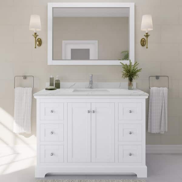 Avery 48 in. W x 22 in. D x 35 in. H Single Bath Vanity in White with Giotto Quartz Top