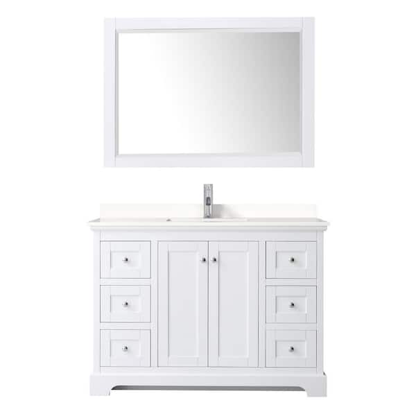 Avery 48 in. W x 22 in. D x 35 in. H Single Bath Vanity in White with White Quartz Top and 46 in. Mirror