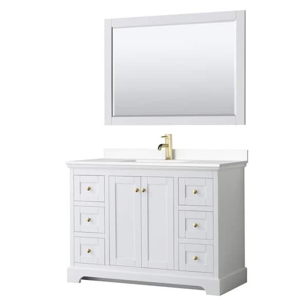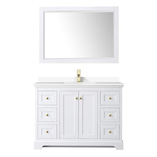 Avery 48 in. W x 22 in. D x 35 in. H Single Sink Bath Vanity in White with White Cultured Marble Top and 46 in. Mirror