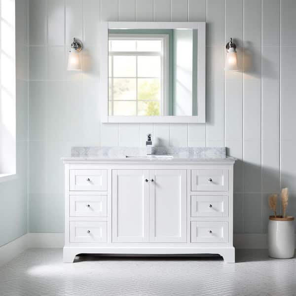 Avery 60 in. W x 22 in. D Bathroom Vanity in White with Marble Vanity Top in White Carrara with White Basin