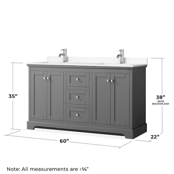 Avery 60 in. W x 22 in. D Double Vanity in Dark Gray with Cultured Marble Vanity Top in White with Basins and Mirror