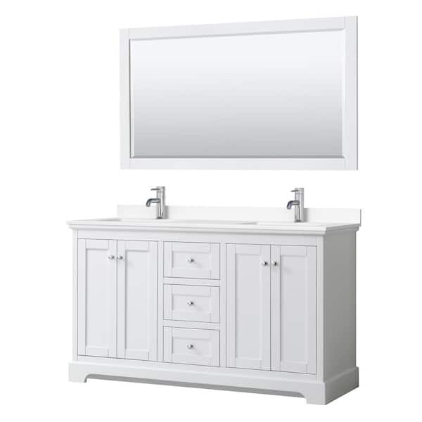 Avery 60 in. W x 22 in. D Double Vanity in White with Cultured Marble Vanity Top in White with Basins and Mirror