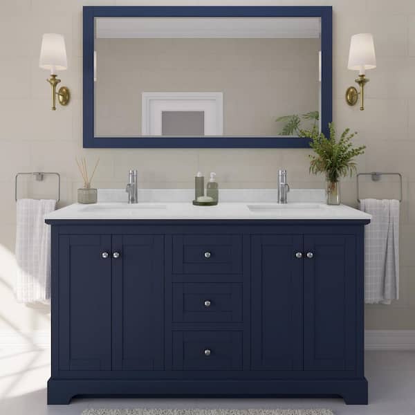 Avery 60 in. W x 22 in. D x 35 in. H Double Bath Vanity in Dark Blue with Carrara Cultured Marble Top