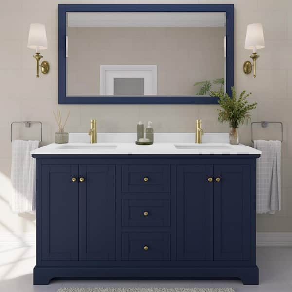Avery 60 in. W x 22 in. D x 35 in. H Double Bath Vanity in Dark Blue with White Quartz Top