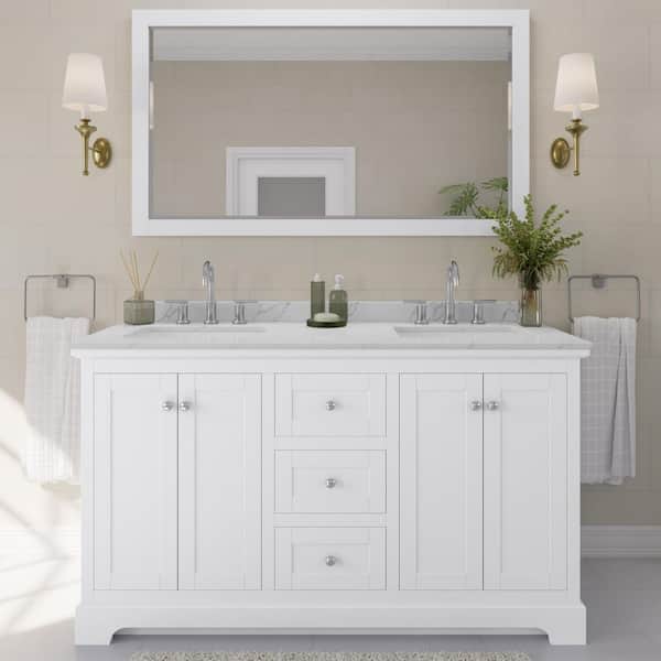 Avery 60 in. W x 22 in. D x 35 in. H Double Bath Vanity in White with Giotto Quartz Top
