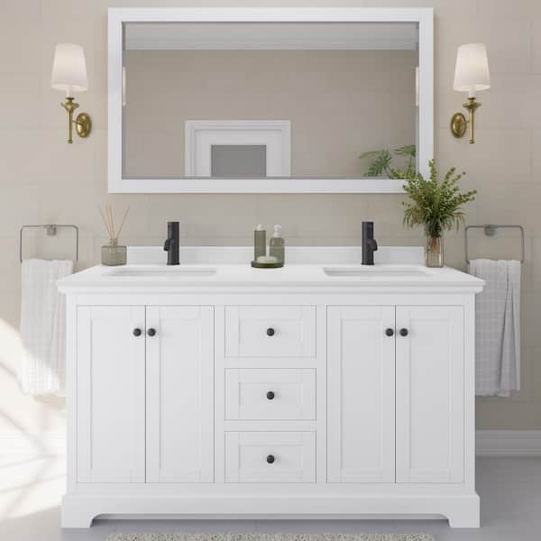Avery 60 in. W x 22 in. D x 35 in. H Double Bath Vanity in White with White Quartz Top