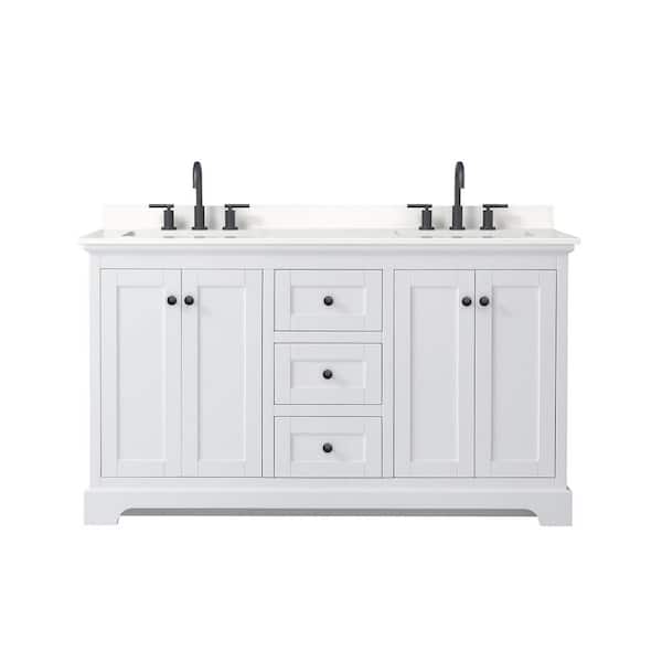 Avery 60 in. W x 22 in. D x 35 in. H Double Bath Vanity in White with White Quartz Top