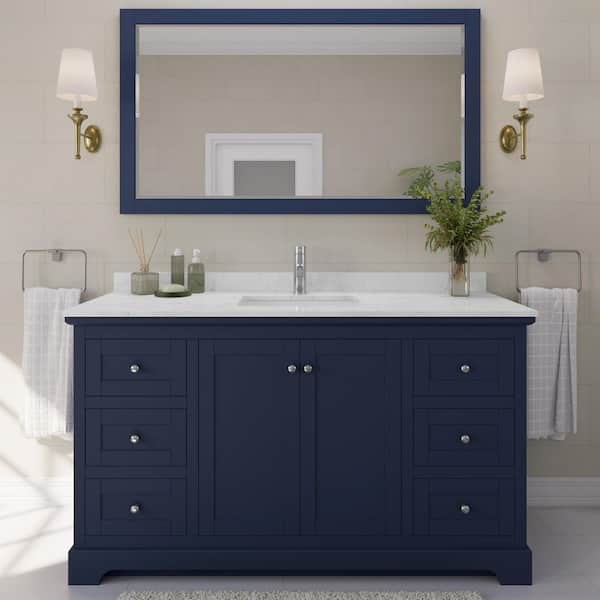 Avery 60 in. W x 22 in. D x 35 in. H Single Bath Vanity in Dark Blue with Carrara Cultured Marble Top