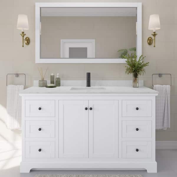 Avery 60 in. W x 22 in. D x 35 in. H Single Bath Vanity in White with Carrara Cultured Marble Top