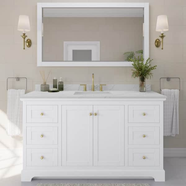 Avery 60 in. W x 22 in. D x 35 in. H Single Bath Vanity in White with Giotto Quartz Top