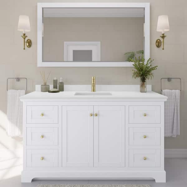 Avery 60 in. W x 22 in. D x 35 in. H Single Bath Vanity in White with White Quartz Top
