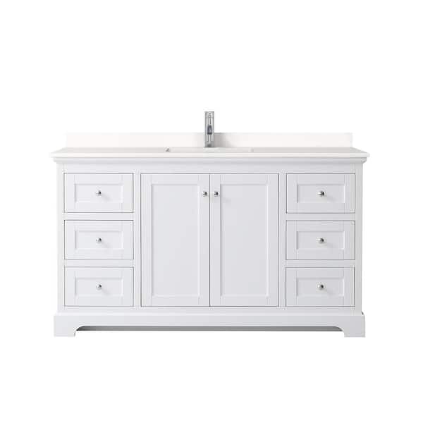 Avery 60 in. W x 22 in. D x 35 in. H Single Bath Vanity in White with White Quartz Top
