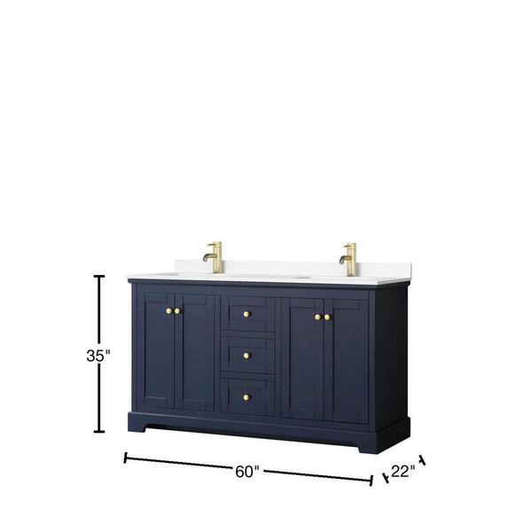 Avery 60in.Wx22 in.D Double Vanity in Dark Blue with Cultured Marble Vanity Top in White with White Basins