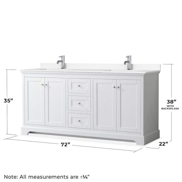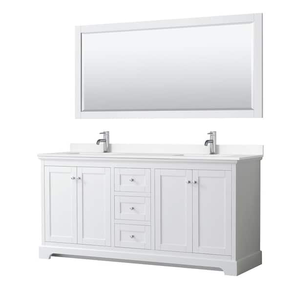 Avery 72 in. W x 22 in. D Double Vanity in White with Cultured Marble Vanity Top in White with Basins and Mirror