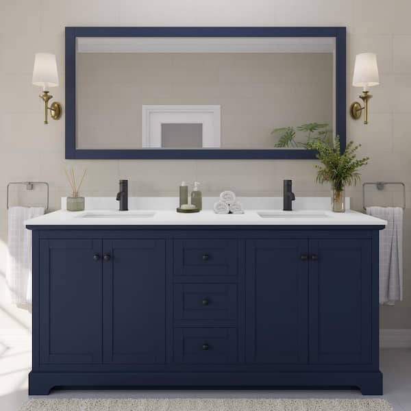 Avery 72 in. W x 22 in. D x 35 in. H Double Bath Vanity in Dark Blue with White Quartz Top