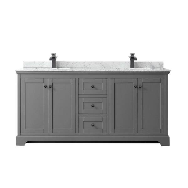 Avery 72 in. W x 22 in. D x 35 in. H Double Bath Vanity in Dark Gray with White Carrara Marble Top