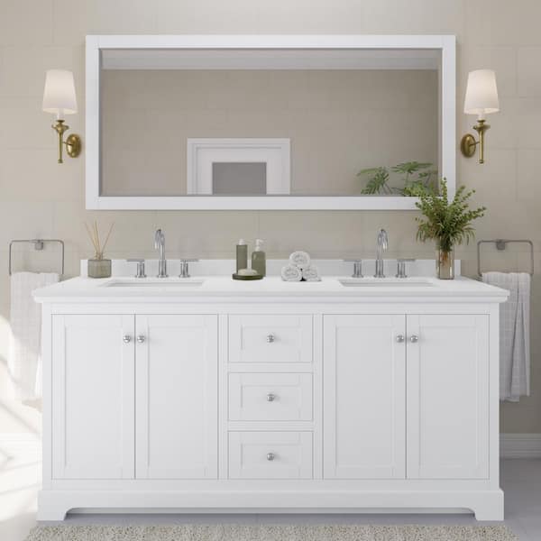 Avery 72 in. W x 22 in. D x 35 in. H Double Bath Vanity in White with White Quartz Top