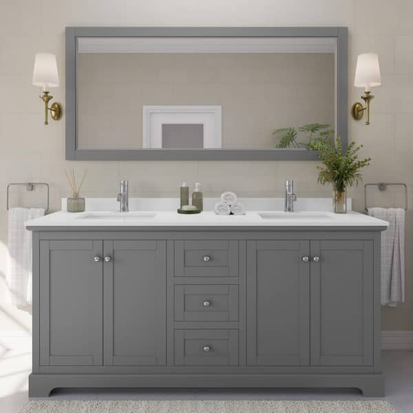 Avery 72in.Wx22 in.D Double Vanity in Dark Gray with Cultured Marble Vanity Top in White with White Basins