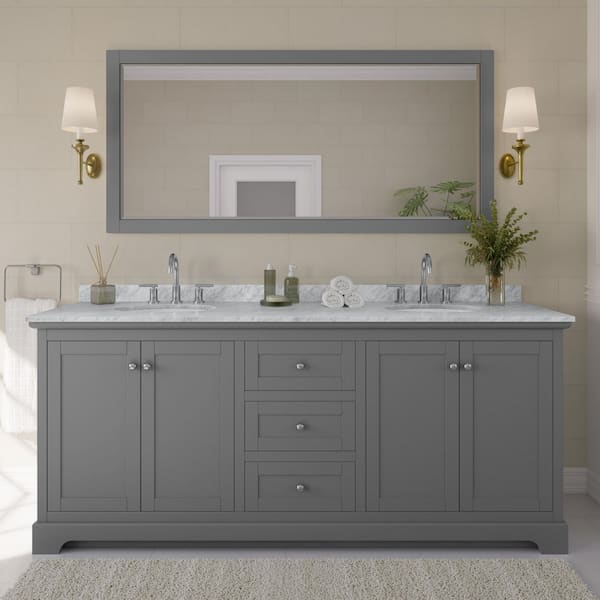 Avery 80 in. W x 22 in. D Bathroom Vanity in Dark Gray with Marble Vanity Top in White Carrara with White Basins