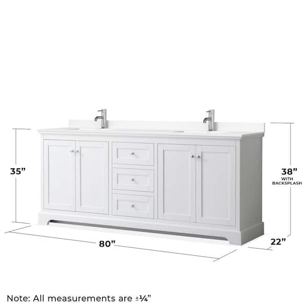 Avery 80 in. W x 22 in. D Double Vanity in White with Cultured Marble Vanity Top in White with Basins and Mirror