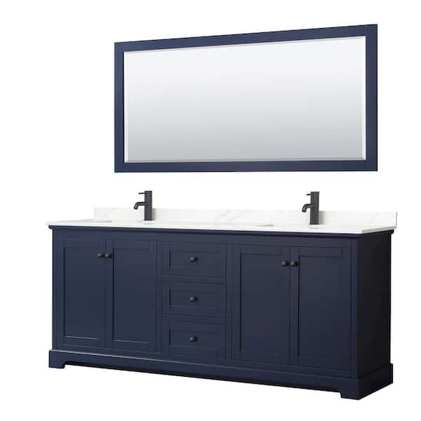 Avery 80 in. W x 22 in. D x 35 in. H Double Bath Vanity in Dark Blue with Giotto Quartz Top and 70 in. Mirror