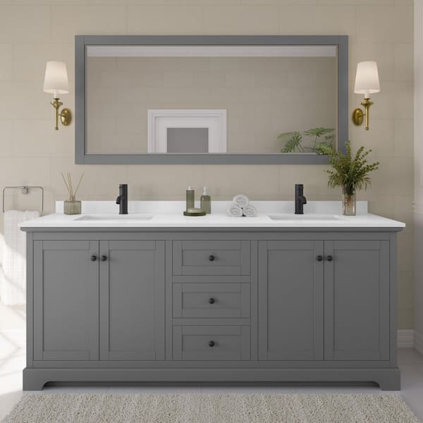 Avery 80 in. W x 22 in. D x 35 in. H Double Bath Vanity in Dark Gray with White Quartz Top