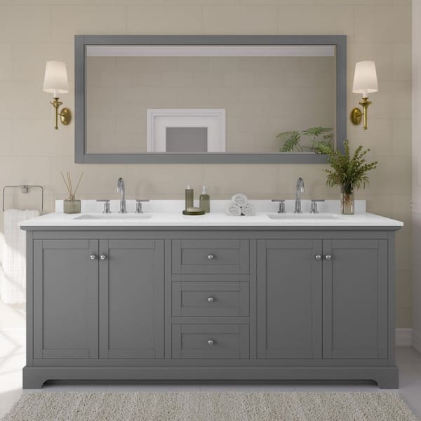 Avery 80 in. W x 22 in. D x 35 in. H Double Bath Vanity in Dark Gray with White Quartz Top
