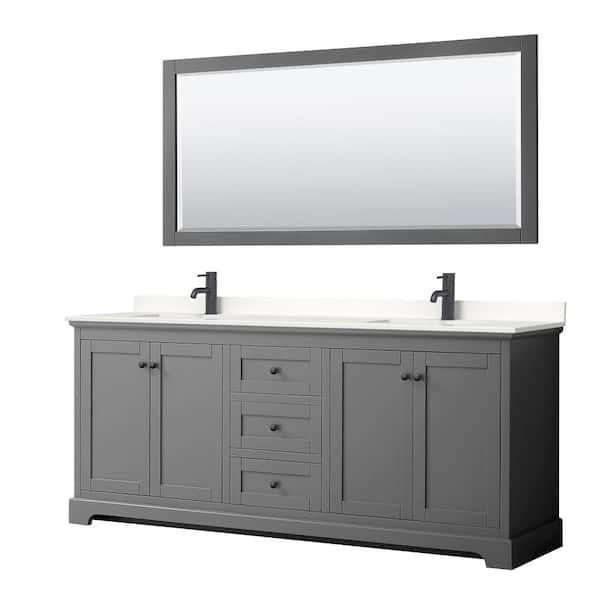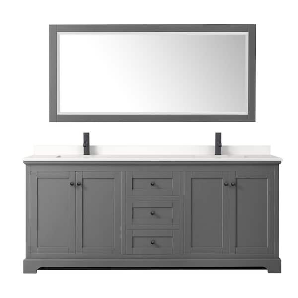Avery 80 in. W x 22 in. D x 35 in. H Double Bath Vanity in Dark Gray with White Quartz Top and 70 in. Mirror