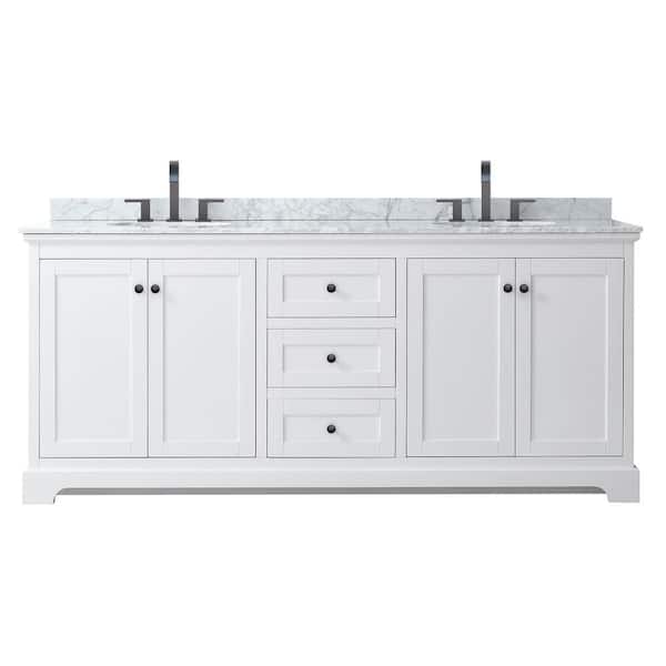 Avery 80 in. W x 22 in. D x 35 in. H Double Bath Vanity in White with White Carrara Marble Top