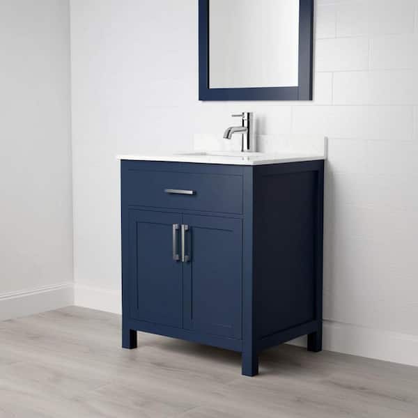 Beckett 30 in. W x 22 in. D x 35 in. H Single Sink Bathroom Vanity in Dark Blue with Carrara Cultured Marble Top