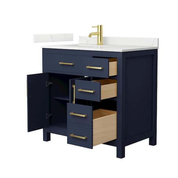 Beckett 36 in. Single Freestanding Dark Blue Bath Vanity with Giotto Quartz Top (Assembled)