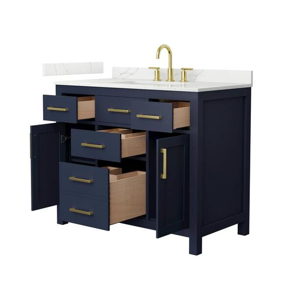 Beckett 42 in. Single Freestanding Dark Blue Bath Vanity with Giotto Quartz Top (Assembled)