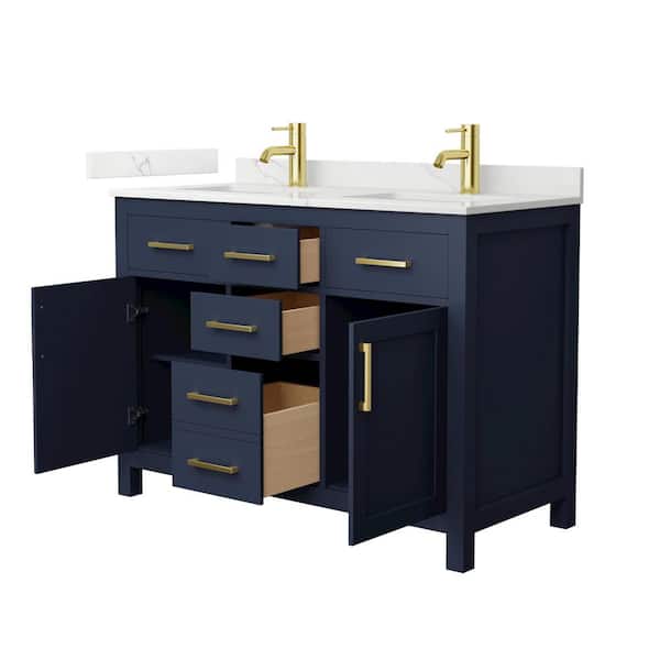 Beckett 48 in. Double Freestanding Dark Blue Bath Vanity with Giotto Quartz Top (Assembled)