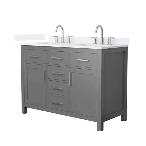 Beckett 48 in. Double Freestanding Dark Gray Bath Vanity with White Quartz Top (Assembled)