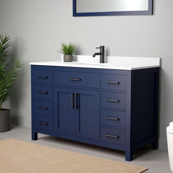 Beckett 54 in. W x 22 in. D x 35 in. H Single Sink Bathroom Vanity in Dark Blue with Carrara Cultured Marble Top