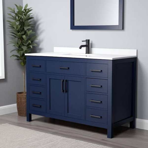 Beckett 54 in. W x 22 in. D x 35 in. H Single Sink Bathroom Vanity in Dark Blue with White Cultured Marble Top