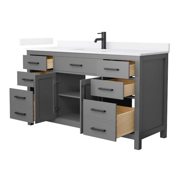 Beckett 60 in. Single Freestanding Dark Gray Bath Vanity with White Quartz Top (Assembled)