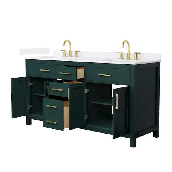 Beckett 66 in. Double Freestanding Green Bath Vanity with White Quartz Top (Assembled)