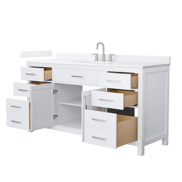 Beckett 66 in. Single Freestanding White Bath Vanity with White Quartz Top (Assembled)