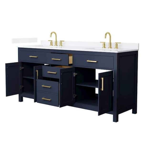 Beckett 72 in. Double Freestanding Dark Blue Bath Vanity with White Quartz Top (Assembled)