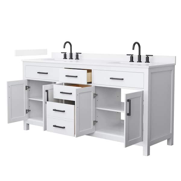 Beckett 72 in. Double Freestanding White Bath Vanity with White Quartz Top (Assembled)