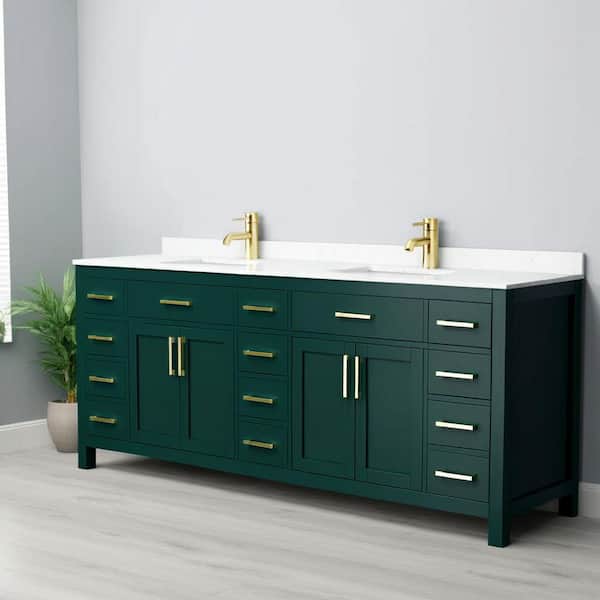 Beckett 84 in. W x 22 in. D x 35 in. H Double Sink Bathroom Vanity in Green with Carrara Cultured Marble Top